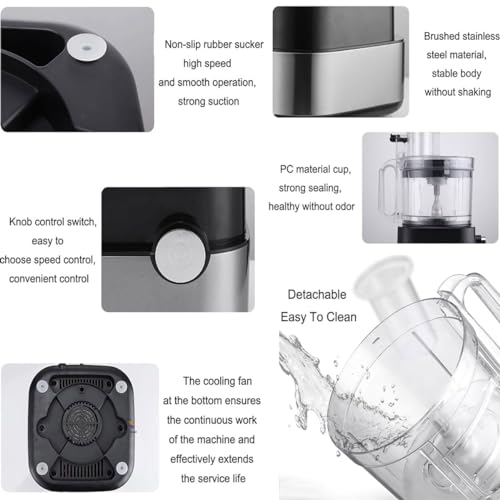 Matériaux de haute qualité : ce robot culinaire est fabriqué en acier inoxydable 304 de qualité alimentaire, PC et technologie de tréfilage. Il résiste à la déformation par impact, pas facile à casser, à la corrosion et à la rouille. La base peut être fortement adsorbée sur la table grâce à quatre ventouses en caoutchouc et n’est pas facile à secouer. Ou faites glisser pour assurer la stabilité.