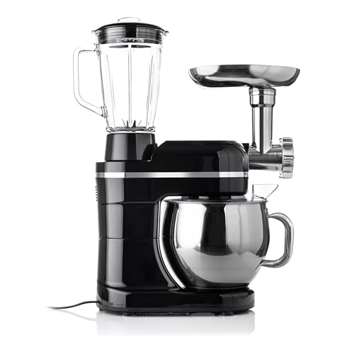 PLUSIEURS FONCTIONS EN UN SEUL APPAREIL – Équipé d’un hachoir à viande, d’un bol mélangeur, d’un accessoire pour pétrir la pâte, d’un fouet et d’un batteur, il offre polyvalence et flexibilité pour la préparation d’une grande variété de plats et de gâteaux.